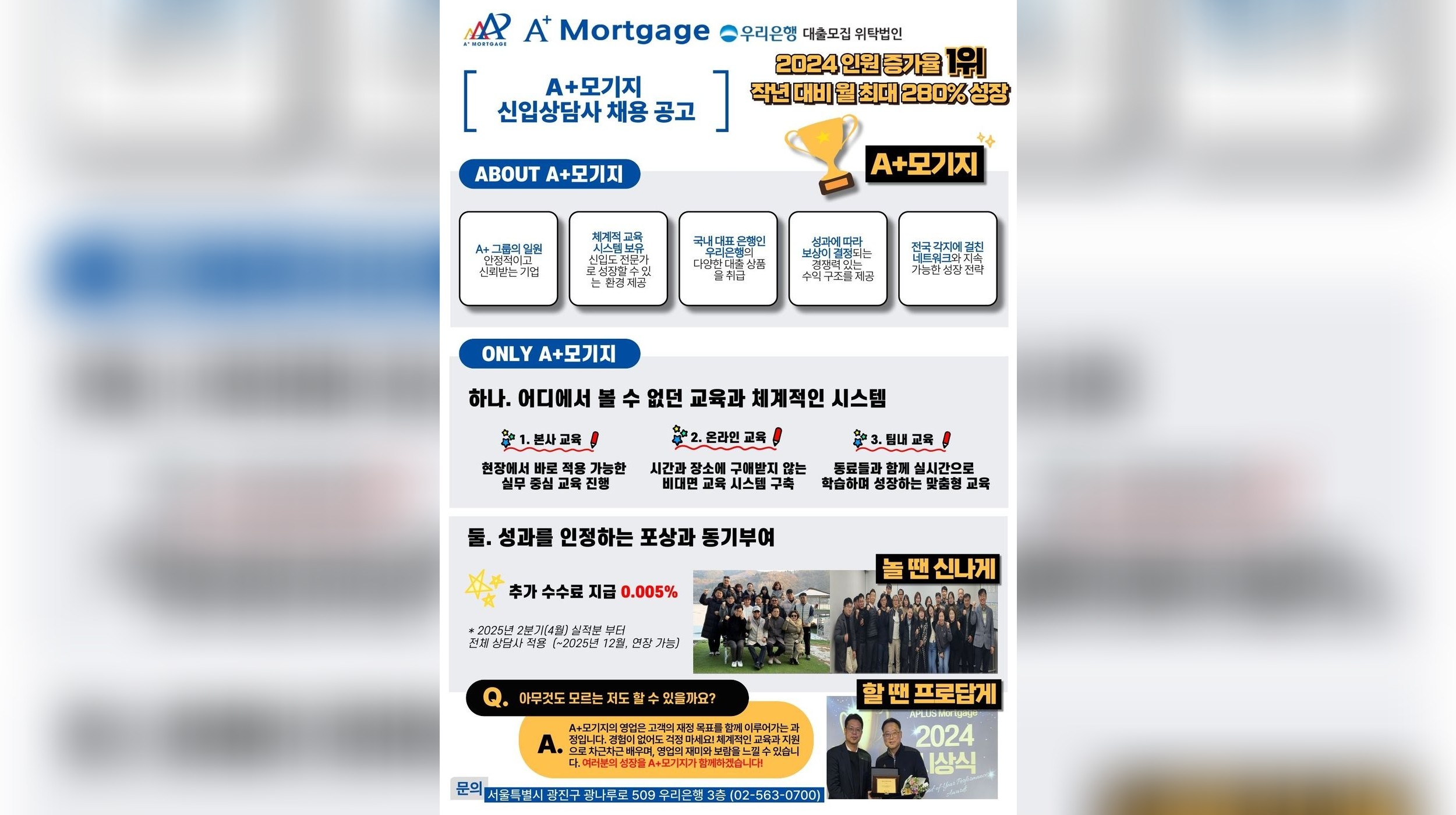 A+모기지 신입 상담사 리쿠르팅 추가수수료 시행